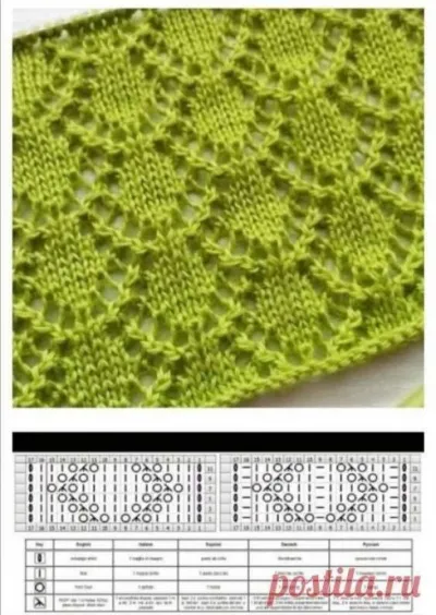 Добрый день! Самый первый, зеленый, узор — очень понравился. Благодарю! Но не видно схему, фото расплывчатое, прочесть невозможно. Прошу показать более четкую схему. Хочу вязать этим узором летнюю кофточку.