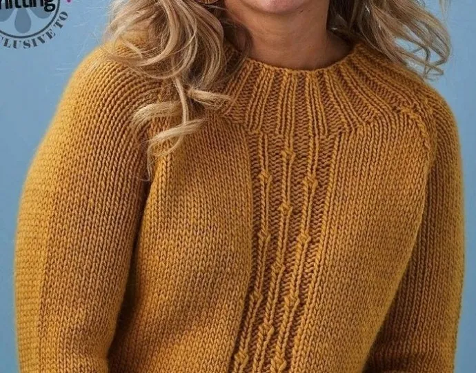 Модель связана с рукавом реглан снизу вверх раздельными деталями. Основной узор — лицевая гладь, поделенная на 4 части вертикальными панелями из резинки с вкраплениями в виде маленьких бутонов.Одна такая панель расположена по центру переда, вторая — по центру спинки, ещё две спрятаны по бокам, под рукавами.Итак, друзья, заканчиваем прелюдию и переходим к делу.