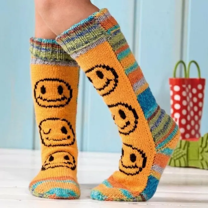 Вяжем детям: Гольфы с вышитыми смайликами