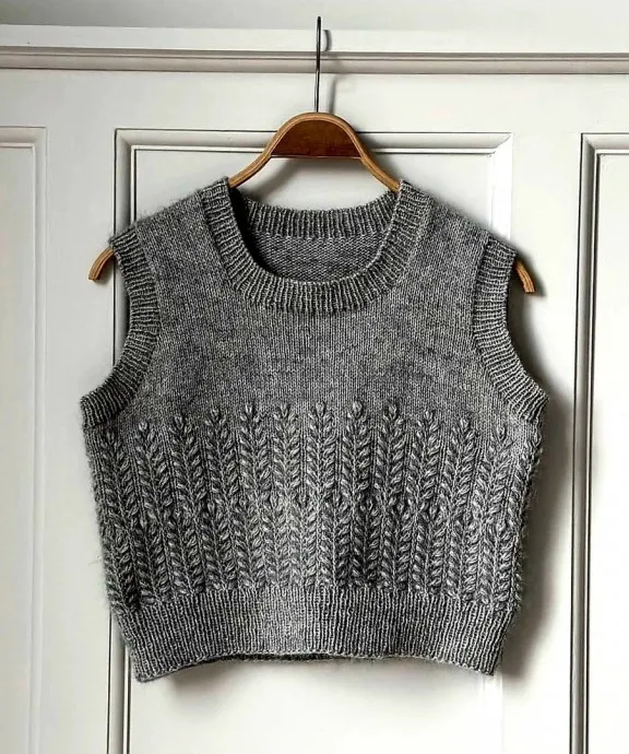 Безрукавка и митенки фантазийным узором "колоски" спицами