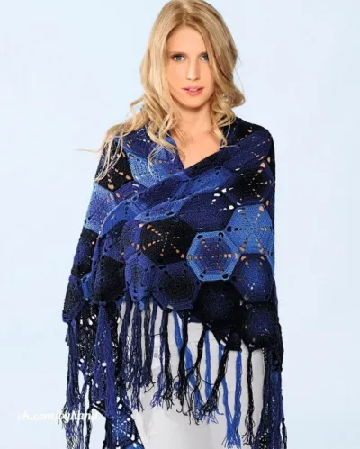 Пряжа (75% шерсти, 25% полиамида; 420 м/100 г) — 600 г синей секционного крашения; крючок №3.