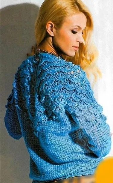 Бирюзовый джемпер с красивой треугольной вставкой крючком