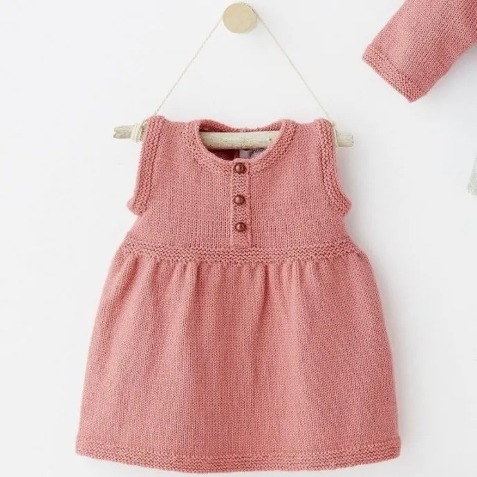 ВАМ ПОТРЕБУЕТСЯ:Пряжа Super Baby (70% акрила, 30% шерсти ягненка) — 75 (100) 100 (125) 150 г пепельно-розовой (ROSE DES SABLES); спицы №2,5 и 3; булавка для снятия петель; 3 пуговицы диаметром 9 мм; 2 кнопки диаметром 9 мм.