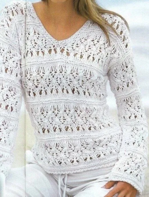 Ажурный пуловер с V-образным вырезом