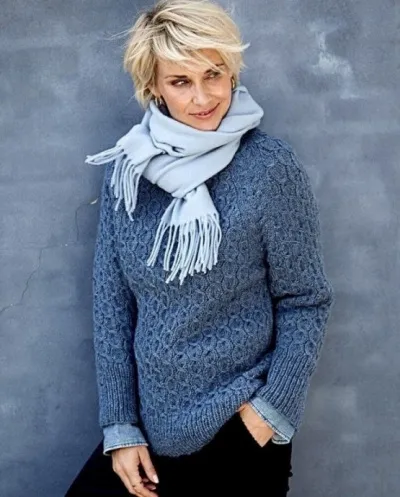 Пряжа BC Garn «Hamelton Tweed 1» (100% шерсти; 50 г/100 м) — 12 (12) 13 (14) мотков джинсово-синей (№3); круговые спицы № 5 длиной 40 и 80 см; чулочные спицы № 5; маркеры петель.