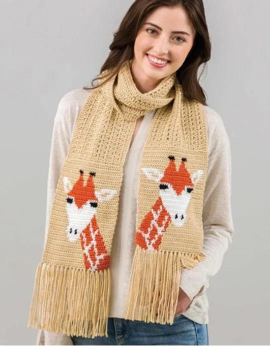 Симпатичные схемы животные крючком. Для шарфика, пледа или джемпера.