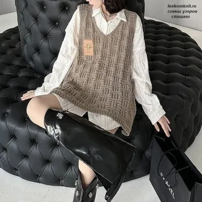 Топ/туника спицами простым узором из чередования вертикальной и горизонтальной резинок