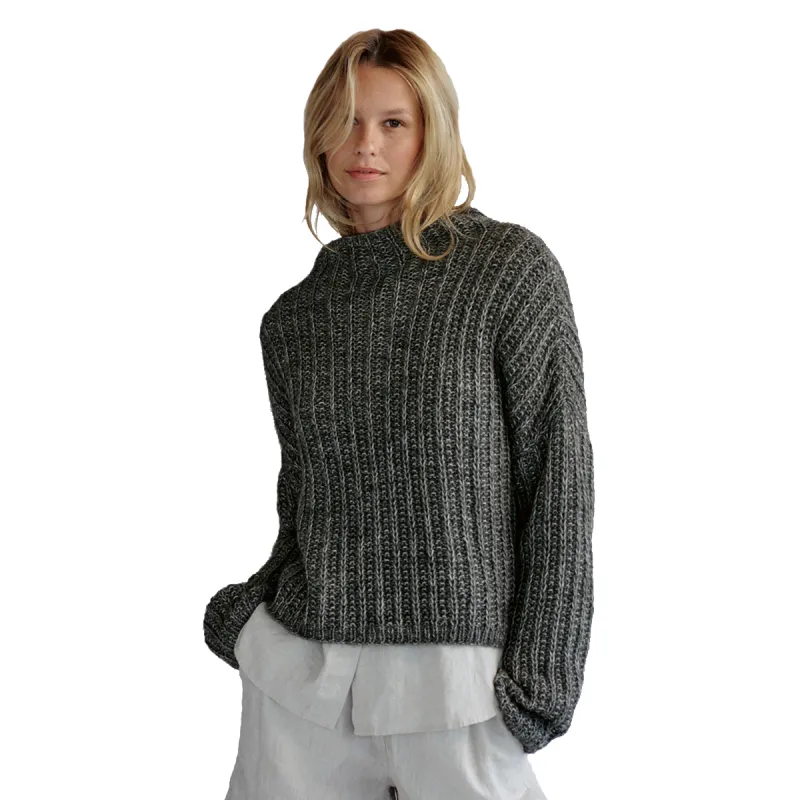 Пряжа Lana Grossa Natural Alpaca Pelo (63% хлопка, 31% шерсти беби альпака, 6% мериносовой шерсти; 50 г / 125 м) - 9 (10) 11 мотков темно-серой меланжевой (цв. 4); спицы №4 и 5.
