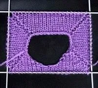 11 ряд лицевой — добираем с обеих сторон по две воздушных петли и замыкаем вязание в круг. На спицах общее количество петель переда больше на 1 петлю, чем спинки.
