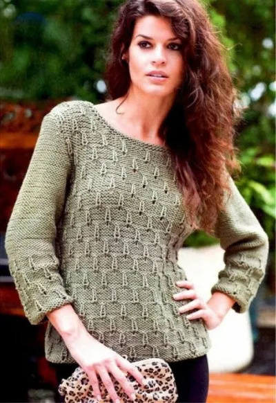 Вам потребуется: пряжа Novita Hanko (50% хлопок, 50% акрил, 104 м/100 г) - 600(650)750(850)950 г цвета хаки (344), спицы № 6, круговые спицы № 6 (длина 40 см).