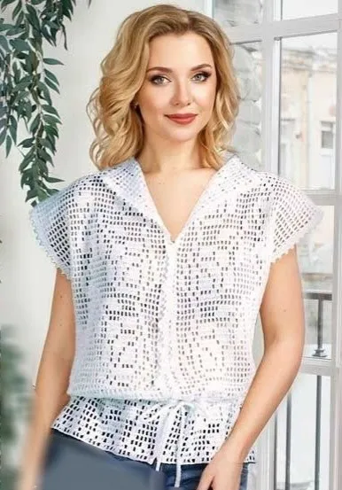 Топ/жилет крючком в филейной технике узором с розами