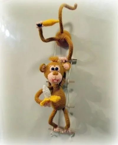 Обезьянки-воришки, вяжем необычный магнит на холодильник