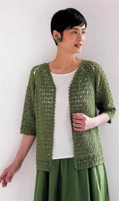 Ажурный жакет с красивыми линиями реглана