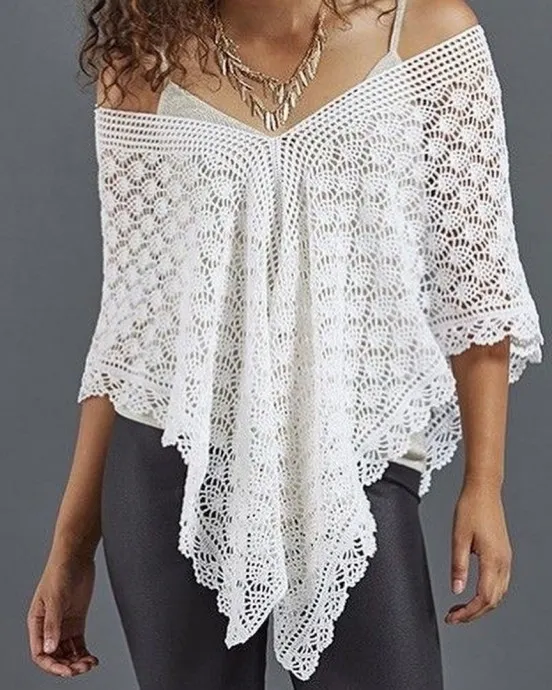 Накидка/пончо красивым узором из мелких "ананасиков"