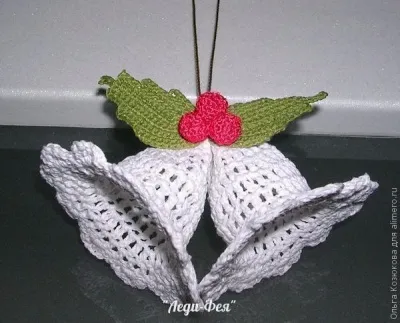 После того, как Вы свяжете эту красоту, её надо накрахмалить. Раствор можно сделать двумя способами. 1 способ. 1 чайную ложку крахмала растворить в 2 чайных ложках холодной воды, а потом потихоньку доливать кипятка(1/4 чашки). 2 способ. 1 столовая ложка сахара, 2 столовые ложки воды и 2 столовые ложки клея ПВА. Намочить в растворе колокольчики и оставить сохнуть.