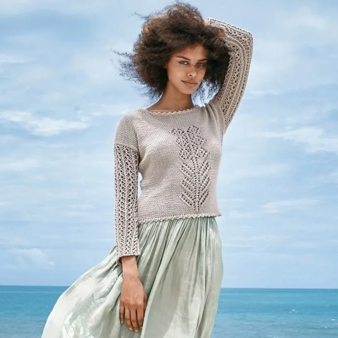 Джемпер с ажурной вставкой, вяжем спицами