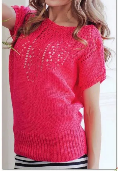 Розовый пуловер с ажурным узором. Вяжем спицами.