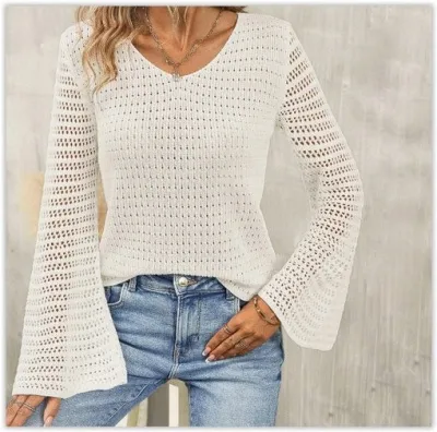 Классическая выкройка, втачные рукава дополнены акцентными расклешенными рукавами, постепенно расширяющимися от плеча к запястью.