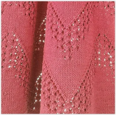 Убавления (прибавления) делаются по линиям между ажурными клиньями, т.е. лицевыми петлями. Зная, сколько убавлений вам надо сделать по всей длине юбки, разделите это количество на число секций с клиньями по высоте. Так вы получите убавления за одну горизонтальную ажурную секцию. Отсюда смотрите, сколько лицевых петель делать между ажурными клиньями, какой ширины должны быть зигзаги.