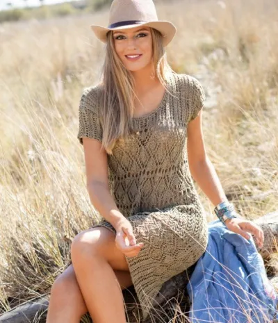 Пряжа (80% переработанного льна (вискоза), 20% льна; 105 м/50 г) — 450 (500) 550 г болотной; спицы №4,5; крючок №4.