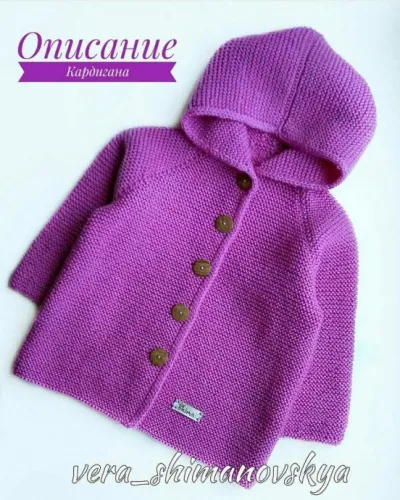 Не забываем делать дырочки для пуговиц. Когда реглан будет 14см, на спинке начинаем вывязывать азиатский росток 2см.