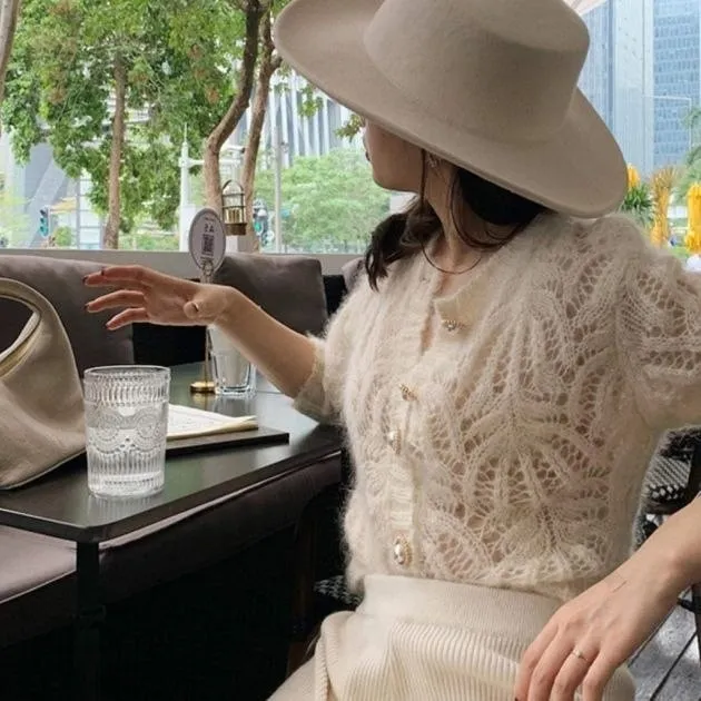 Вяжем французский кардиган на пуговицах с красивым ажурным узором.