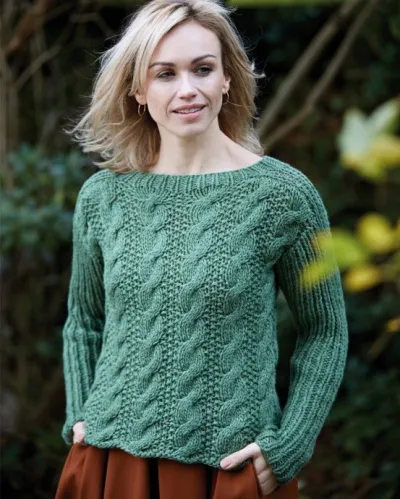Зеленый джемпер с узором из «кос»