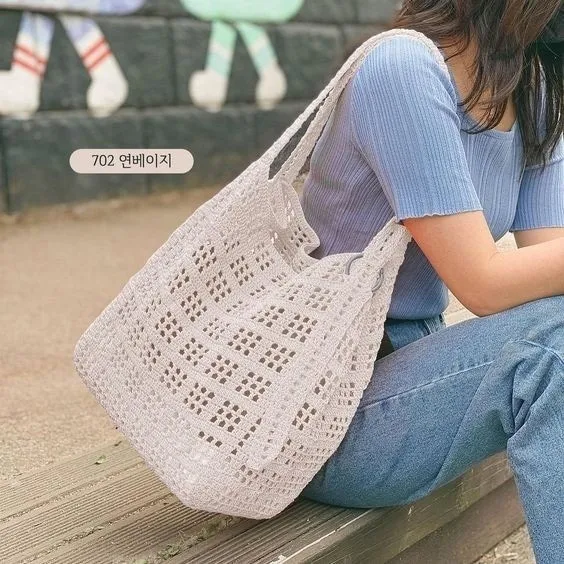Я связала сумку квадратами. Нужен вкладыш. Без вкладыша висит как авоська.