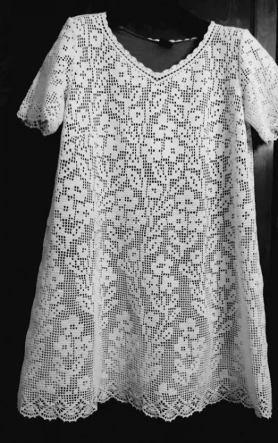 Филейное вязание: платье с цветочным узором
