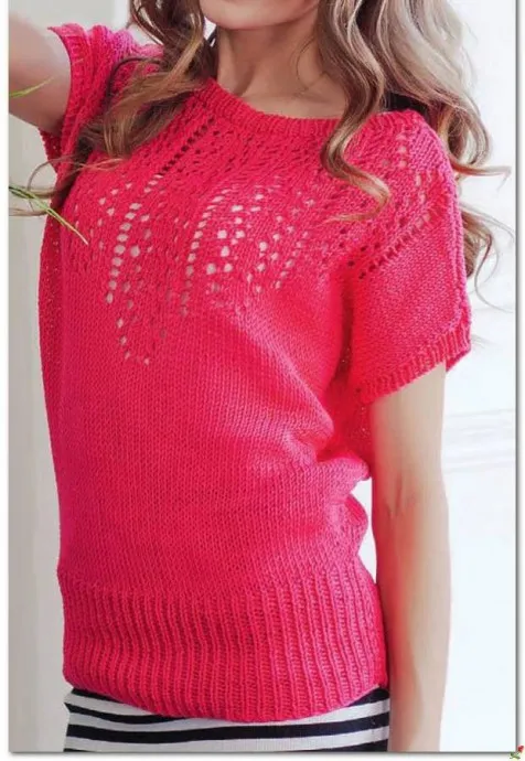 Розовый пуловер с ажурным узором