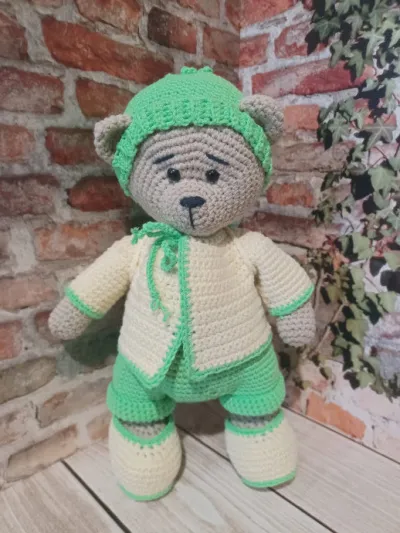 Медвежонок с рюкзаком, связанный крючком, ростом 25 см, с возможностью снятия одежды — идеальный подарок для детей и взрослых. Его мягкая гиполергенная пряжа и выразительные глаза сразу же завоюют сердца всех, кто его увидит. Медвежонок поставляется с рюкзаком, который можно использовать для хранения различных предметов или просто как аксессуар. Этот медвежонок станет прекрасным дополнением к коллекции мягких игрушек вашего ребёнка или стильным аксессуаром для комнаты подростка. Он также может быть использован в качестве талисмана или подарка на день рождения, Новый год или любой другой праздник. Не упустите возможность приобрести этого очаровательного медвежонка с рюкзаком для себя или в подарок своим близким.