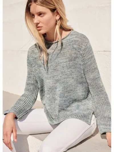 • Пряжа: 400 (450–500–550) г серо-синей меланжевой (цв. 106) пряжи Landlust Sommerseide (50% шелка, 50% хлопка, 170 м/50 г) фирмы Lana Grossa.