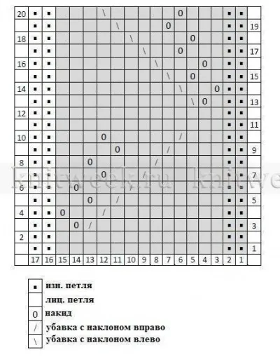 Набрать 100 п. и вязать 4 ряда жемчужным узором, далее вязать основным узором листья, при этом первые и последние 4 п. продолжать вязать жемчужным узором. Вязать на необходимую высоту и далее провязать еще 4 ряда жемчужным узором. Закрыть все петли.