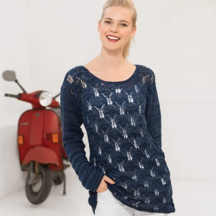 - Пряжа (100% льна; 150 м/50 г) — 500 (550) г синей;