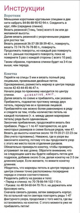Свободный свитер с круглой кокеткой и теневыми узорами, связанный спицами, – это не только комфортный и тёплый элемент гардероба, но и стильная вещь, которая поможет создать множество разнообразных и интересных образов. Экспериментируйте с сочетаниями, добавляйте аксессуары и играйте с цветами, чтобы каждый день выглядеть по-новому и чувствовать себя уверенно.