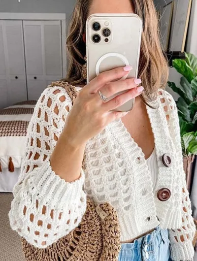 3. Практичность: Пуговицы позволяют регулировать степень закрытости, что делает жакет удобным для различных погодных условий. Он может стать отличной альтернативой легкому пальто или кардигану.