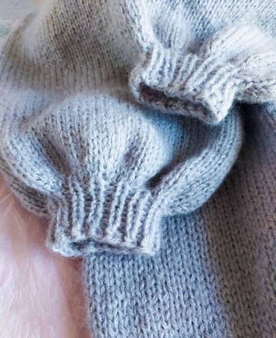 Поднимаем петли для планки спицами #7 с каждой кромочной петли. Вяжем резинку 1×1 10-12 рядов, закрываем петли.
