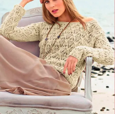 Восхитительный ажурный узор этого джемпера очаровывает. Исключительно нежная модель для настоящих ценительниц прекрасного.
