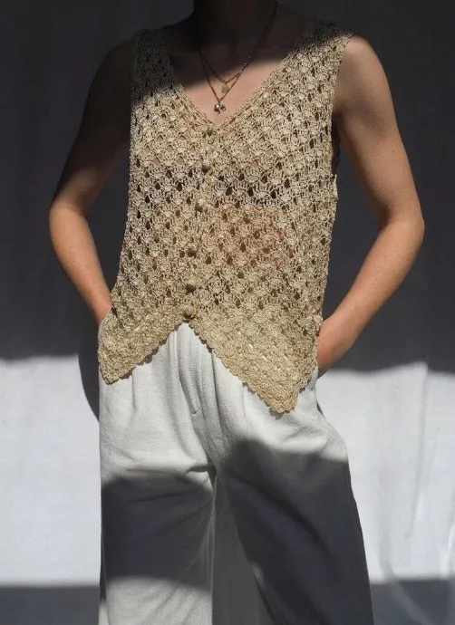 - Топ с открытыми плечами: Для теплой погоды и летних вечеринок. Легкий жилет добавит вашему образу нотку бохо-шика.