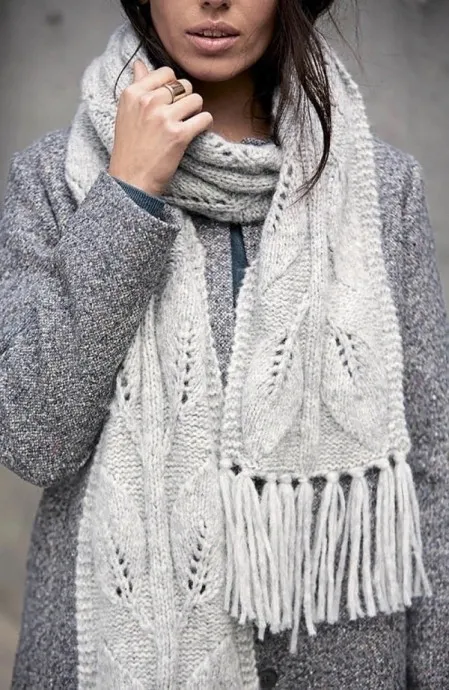 - Многообразие дизайнов: С помощью спиц можно создать разнообразные узоры — от простых гладких полотен до сложных ажурных или рельефных узоров, что позволяет подобрать шарф на любой вкус.