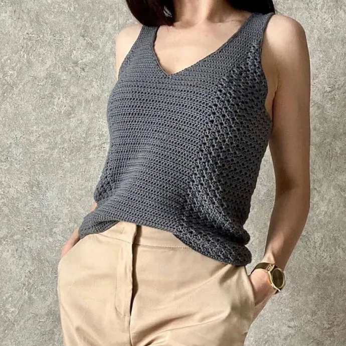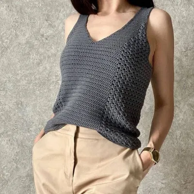 Короткий серый топ, связанный крючком, – это стильное и универсальное дополнение к вашему гардеробу. Его лаконичный дизайн и нейтральный цвет позволяют легко сочетать его с разными вещами, создавая интересные и модные образы.