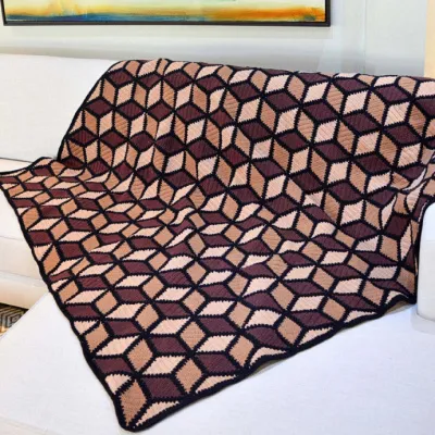 Интересный плед с геометрическим узором, вяжем крючком