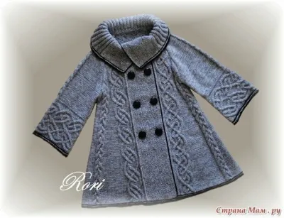 Возраст 12 лет. Пряжа Yarn Art две нитки: Legend (8821, 40% шерсть, 50% акрил, 10% вискоза, 300м/100гр.) + Wool (0282, 80% шерсть, 20% акрил, 340м/100гр.). Спицы №4-основное полотно и №3-планки для застежки. Связано регланом снизу вверх одним полотном, рукава вшиты, планки-застежки привязаны крючком.