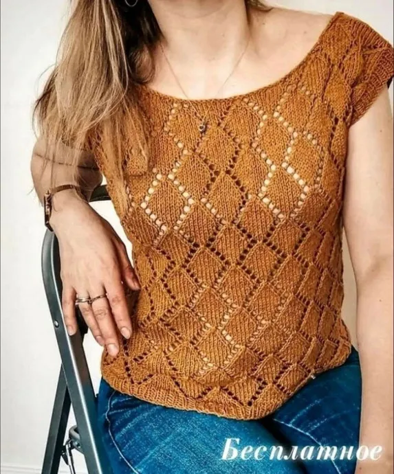 - Воздушность и легкость: Ажурная вязка делает топ легким и дышащим, что особенно важно в теплую погоду.