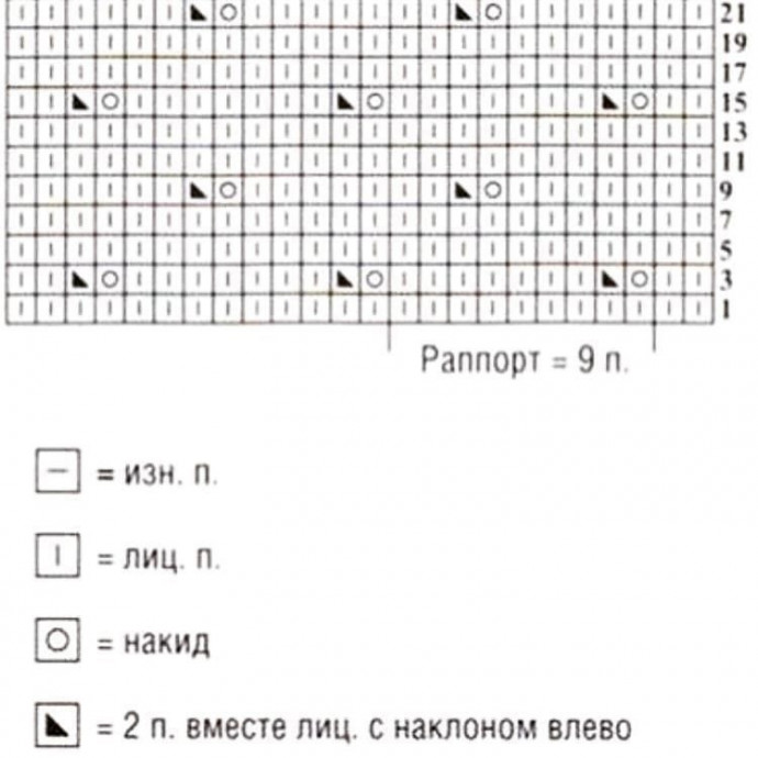 Узор «Дырочки» по схеме. Число петель кратное 9.