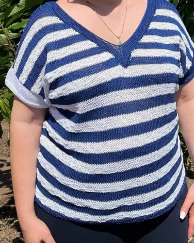 Далее вяжем 84 р чередуя цвет полос каждые 7 рядов.