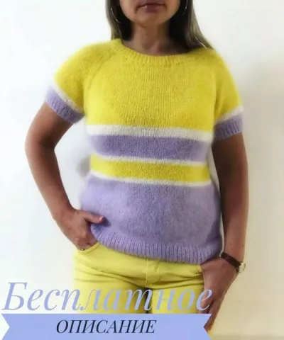 Футболка вяжется по кругу сверху вниз одной деталью без швов