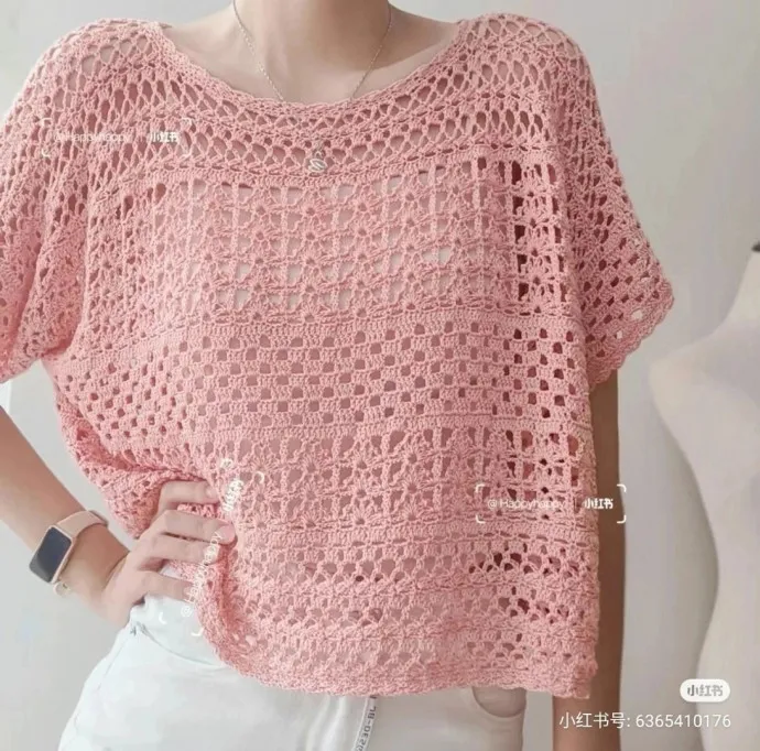 - Элегантный дизайн: Розовый цвет придает топу романтичный и женственный вид, а ажурные узоры добавляют изысканности и утонченности. Такой топ можно носить как на повседневные прогулки, так и на особые случаи.