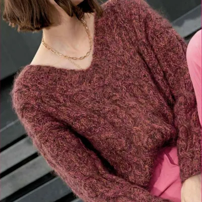 Мохеровый пуловер с V-образным вырезом и узором из «кос»