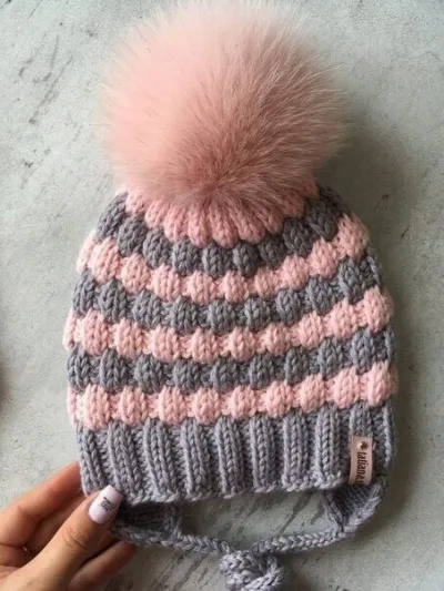 Шапочку стираем, сушим, ставим меховой помпон и бирочку.